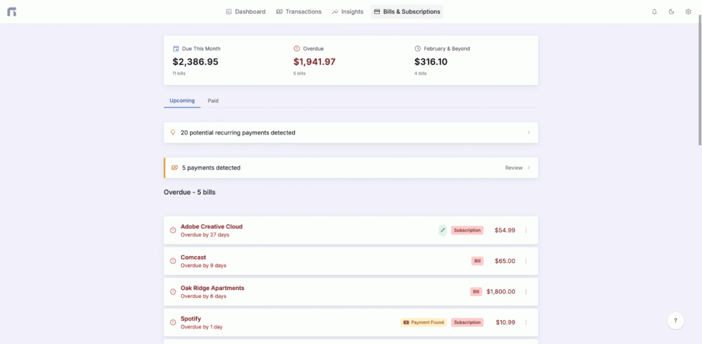 - Scan bank statements for repeating charges